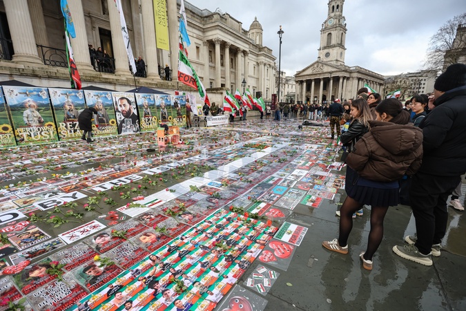 Memorial for victims of Iranian government in Trafalgar Square in London, UK, on 07 February 2026