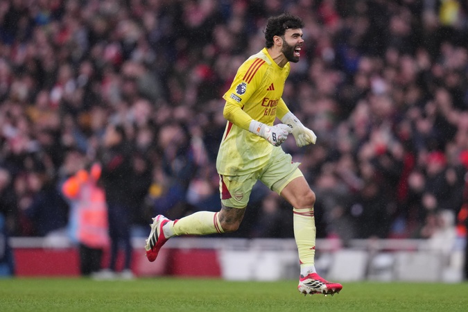 David Raya of Arsenal celebrates arsenal first goal during the Premier League match Arsenal vs Sunderland at Emirates, London, United Kingdom on 07 February 2026, Credit:Harvey Murphy/News Images / Avalon