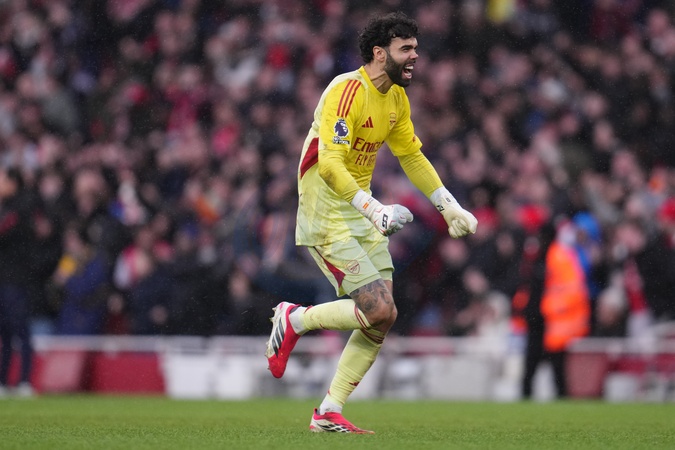 David Raya of Arsenal celebrates teams first goal during the Premier League match Arsenal vs Sunderland at Emirates, London, United Kingdom on 07 February 2026, Credit:Harvey Murphy/News Images / Avalon