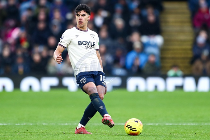 Mateus Fernandes of West Ham United passes the ball during the Premier League match Burnley vs West Ham United at Turf Moor, Burnley, United Kingdom on 07 February 2026, Credit:Jorge Horsted/News Images / Avalon