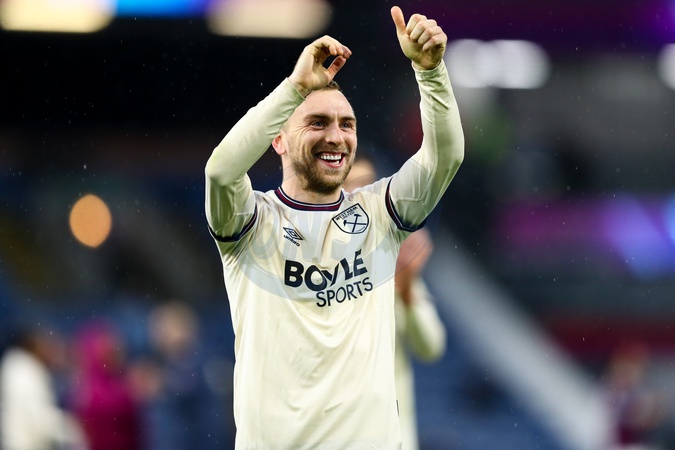Jarrod Bowen of West Ham United celebrates 0-2 win after the Premier League match Burnley vs West Ham United at Turf Moor, Burnley, United Kingdom on 07 February 2026, Credit:Jorge Horsted/News Images / Avalon
