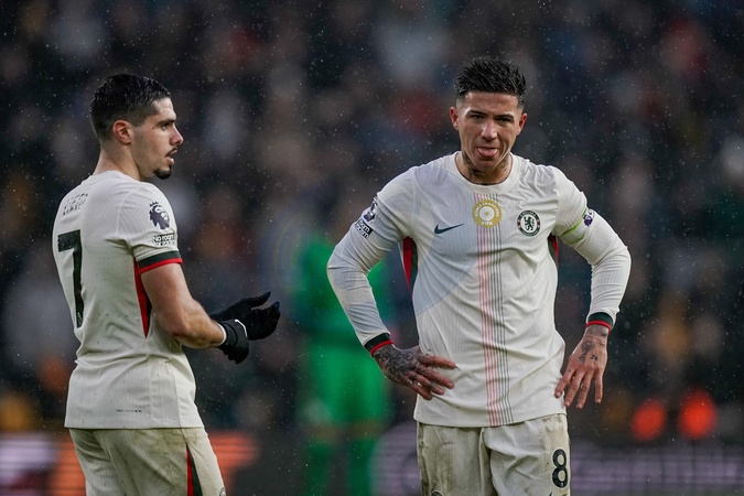 Pedro Neto of Chelsea and Enzo Fernandez of Chelsea during the Premier League match Wolverhampton Wanderers vs Chelsea at Molineux, Wolverhampton, United Kingdom on 07 February 2026, Credit:Maynard Manyowa/News Images / Avalon