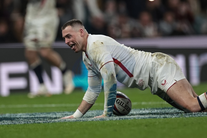 Tom Roebuck of England goes over for a try during the Guinness Six Nations 2026 match England vs Wales at Allianz Stadium, Twickenham, United Kingdom on 07 February 2026, Credit:Mark Cosgrove/News Images / Avalon