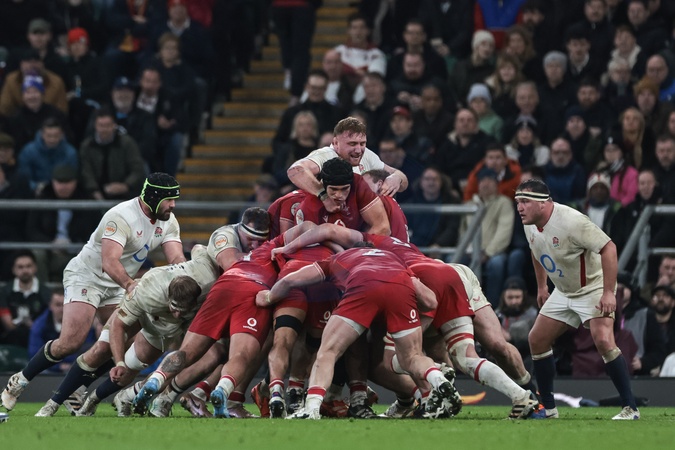 Ollie Chessum of England applies pressure on the scrum during the Guinness Six Nations 2026 match England vs Wales at Allianz Stadium, Twickenham, United Kingdom on 07 February 2026, Credit:Mark Cosgrove/News Images / Avalon