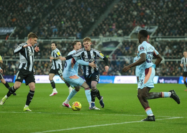 Lewis Hall of Newcastle United is fouled by Jordan Henderson of Brentford during the Premier League match Newcastle Untied vs Brentford at St. James's Park, Newcastle, United Kingdom on 07 February 2026, Credit:Richard Bierton/News Images / Avalon