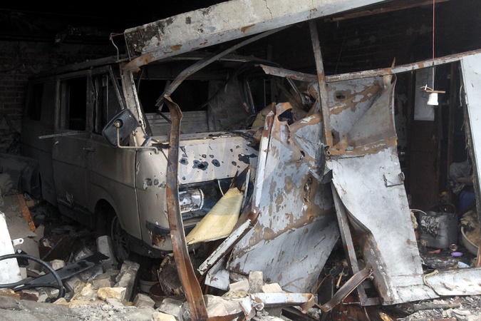 A van is damaged at a depot after a Russian drone strike, Dnipro, Ukraine, February 7, 2026. On the night of February 7, the Russian army launched more than 400 drones and about 40 missiles across Ukraine, targeting energy and civil infrastructure. In Dnipro, 18 passenger trolleybuses, one service vehicle, and other transport were damaged at a depot, while administrative buildings and heating systems were also affected., Credit:Mykola Miakshykov / Avalon