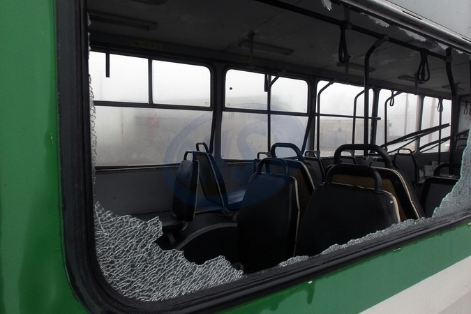 A trolleybus window shattered by a Russian drone strike frames the rows of seats, Dnipro, Ukraine, February 7, 2026. On the night of February 7, the Russian army launched more than 400 drones and about 40 missiles across Ukraine, targeting energy and civil infrastructure. In Dnipro, 18 passenger trolleybuses, one service vehicle, and other transport were damaged at a depot, while administrative buildings and heating systems were also affected., Credit:Mykola Miakshykov / Avalon