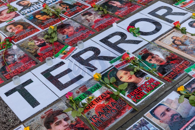Trafalgar Square, London, UK. 7th February 2026.A 'Stop The Genocide' Exhibition to honour and remember those killed by the government of the Islamic Republic of Iran over the 47 years since the Islamic Revolution in 1979.Hundreds of photographs and personal objects were surrounded by candles and flowers.Many images included some of the estimated 90,000 killed during the current genocide by the regime; 12,000 - 36,500 of those are thought to have been killed over the Jan 8th-9th crackdown on the current protests., Credit:Photo by Amanda Rose / Avalon