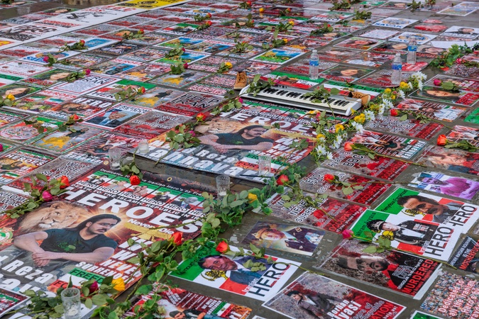 Trafalgar Square, London, UK. 7th February 2026.A 'Stop The Genocide' Exhibition to honour and remember those killed by the government of the Islamic Republic of Iran over the 47 years since the Islamic Revolution in 1979.Hundreds of photographs and personal objects were surrounded by candles and flowers.Many images included some of the estimated 90,000 killed during the current genocide by the regime; 12,000 - 36,500 of those are thought to have been killed over the Jan 8th-9th crackdown on the current protests., Credit:Photo by Amanda Rose / Avalon