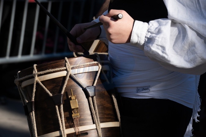 A young musician from a traditional Galician folk group playing the drum during the 2026 Chinese New Year parade in Barcelona, Credit:© 2026 Ivan Sánchez Jiménez / Avalon