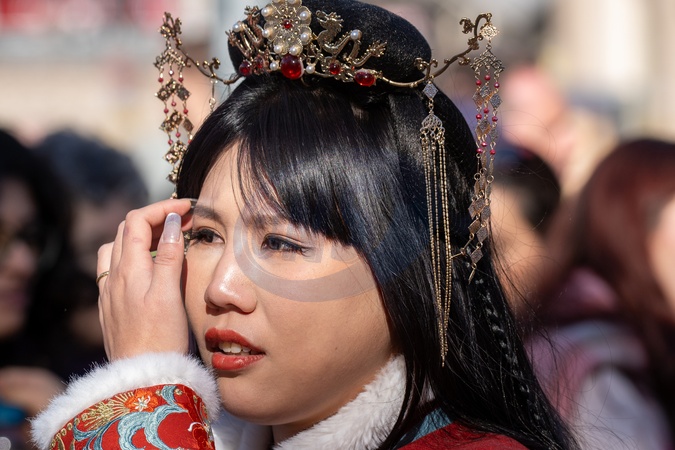A woman dressed in traditional Chinese attire participating in the 2026 Chinese New Year celebrations in Barcelona, Credit:© 2026 Ivan Sánchez Jiménez / Avalon