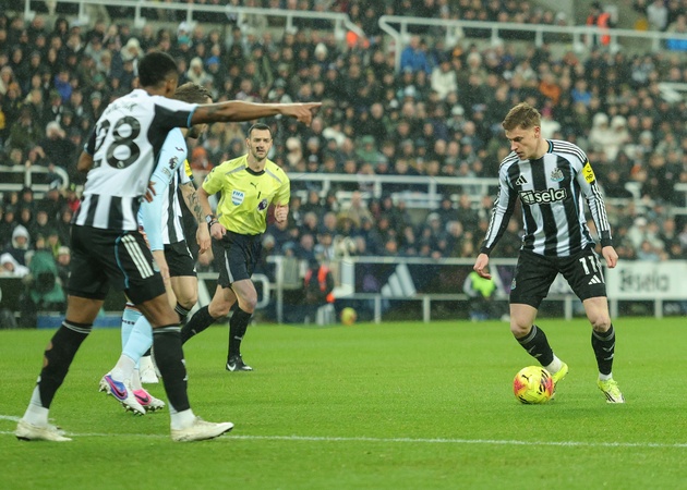 Harvey Barnes of Newcastle United with the ball during the Premier League match Newcastle Untied vs Brentford at St. James's Park, Newcastle, United Kingdom on 07 February 2026, Credit:Richard Bierton/News Images / Avalon