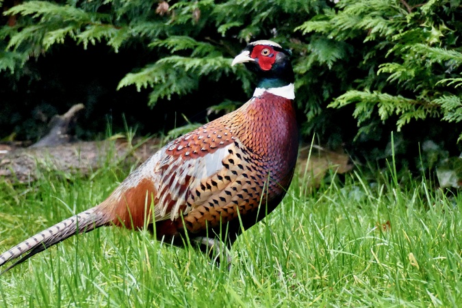 A male Phesant (Phasianus colchicus) ventures off of the beaten track to wander into an urban garden looking for food., Credit:Geoffrey Swaine / Avalon