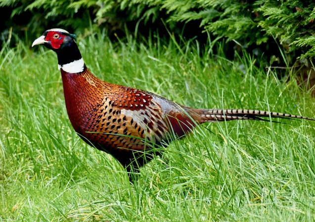 A male Phesant (Phasianus colchicus) ventures off of the beaten track to wander into an urban garden looking for food., Credit:Geoffrey Swaine / Avalon