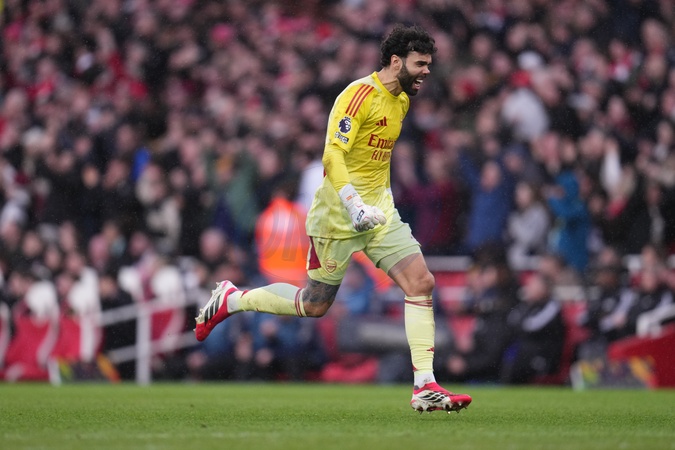 David Raya of Arsenal celebrates first goal during the Premier League match Arsenal vs Sunderland at Emirates, London, United Kingdom on 07 February 2026, Credit:Harvey Murphy/News Images / Avalon