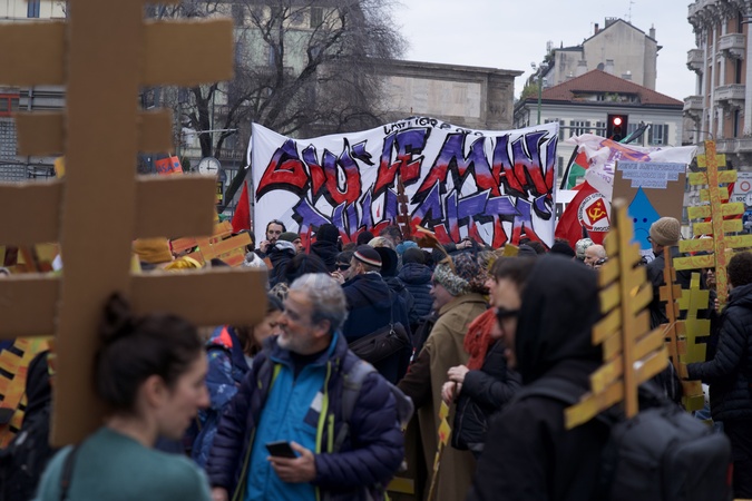 National demonstration "Let's take back our cities, let's free the mountains - Against the most unsustainable Olympic Games ever," organized to protest the first day of competition at the Milan-Cortina Winter Olympics. Milan. Italy 07 Feb 2026, Credit:Selene Daniele/AGF / Avalon