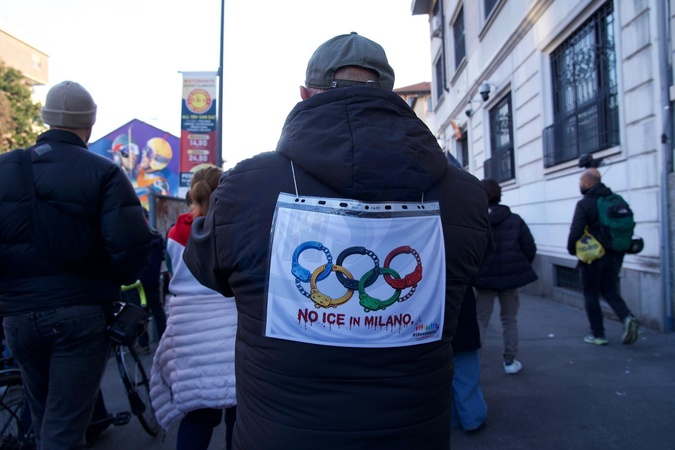 National demonstration "Let's take back our cities, let's free the mountains - Against the most unsustainable Olympic Games ever," organized to protest the first day of competition at the Milan-Cortina Winter Olympics. Milan. Italy 07 Feb 2026, Credit:Selene Daniele/AGF / Avalon