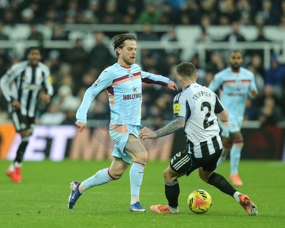 Mathias Jensen of Brentford in action during the Premier League match Newcastle Untied vs Brentford at St. James's Park, Newcastle, United Kingdom on 07 February 2026, Credit:Richard Bierton/News Images / Avalon