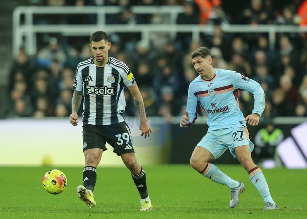 Bruno Guimaraes of Newcastle United passes the ball during the Premier League match Newcastle Untied vs Brentford at St. James's Park, Newcastle, United Kingdom on 07 February 2026, Credit:Richard Bierton/News Images / Avalon