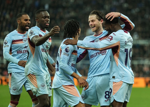 Dango Ouattara of Brentford celebrates his goal to make it 2-3 during the Premier League match Newcastle Untied vs Brentford at St. James's Park, Newcastle, United Kingdom on 07 February 2026, Credit:Richard Bierton/News Images / Avalon