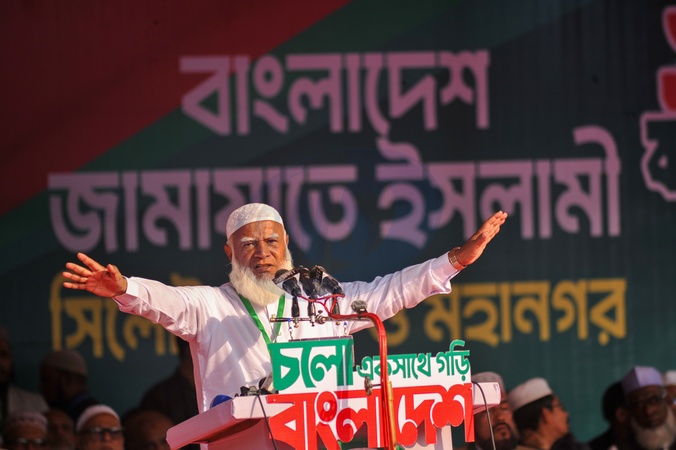 Sylhet, Bangladesh- Bangladesh Jamaat-e-Islami Ameer DR SHAFIQUR RAHMAN addresses supporters during the 11-party alliance national election campaign rally at the at the historic Sylhet Government Alia Madrasa ground in Sylhet on February 7, and outlining his plans and vision to voters. Thousands of party leaders and supporters from across the Sylhet division attended the rally, including a significant number of women and children., Credit:Md Rafayat Haque Khan / Avalon