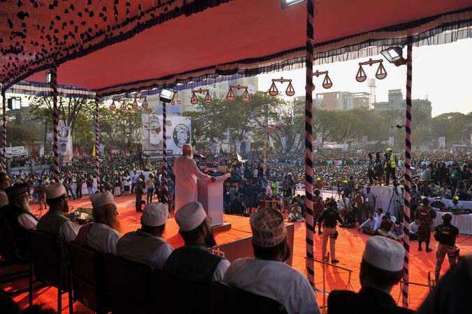 Sylhet, Bangladesh- Bangladesh Jamaat-e-Islami Ameer DR SHAFIQUR RAHMAN addresses supporters during the 11-party alliance national election campaign rally at the at the historic Sylhet Government Alia Madrasa ground in Sylhet on February 7, and outlining his plans and vision to voters. Thousands of party leaders and supporters from across the Sylhet division attended the rally, including a significant number of women and children., Credit:Md Rafayat Haque Khan / Avalon