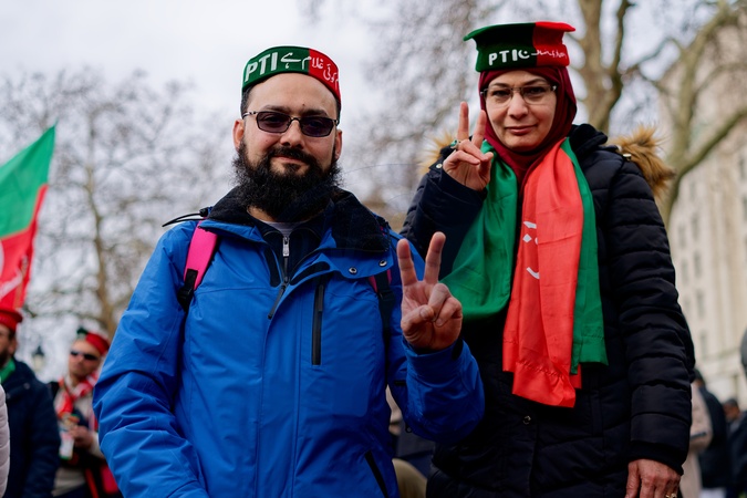 Around 400 protesters held a rally opposite Downing Street to call for the release Imran Khan and for him to be allowed to lead Pakistan, Credit:Aldo Ciarrocchi / Avalon