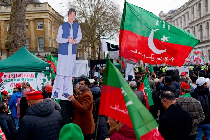 Around 400 protesters held a rally opposite Downing Street to call for the release Imran Khan and for him to be allowed to lead Pakistan, Credit:Aldo Ciarrocchi / Avalon