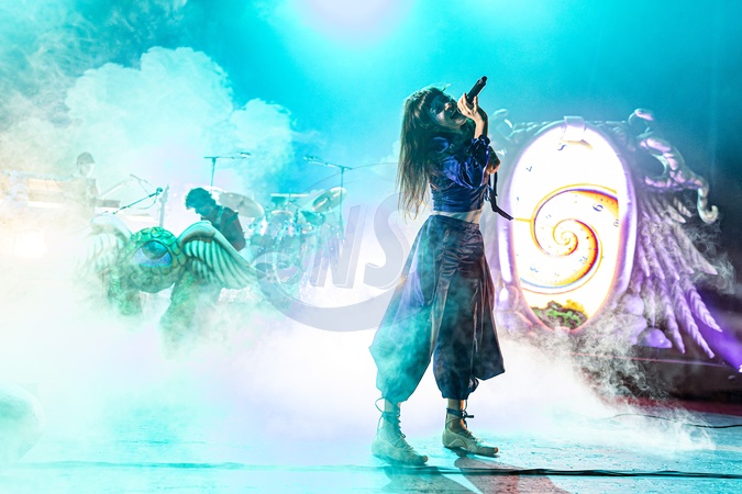 Mica Tenenbaum of American alternative pop duo Magdalena Bay performs at Manchester Apollo, Manchester, England, 8th February 2026, Credit:Mike Gray / Avalon