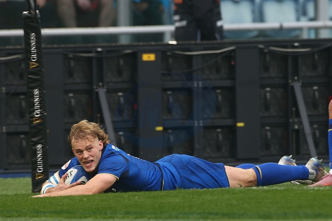 7/2/2026 Roma,Guinness M 6 Nations, Italia vs Scozia,nella foto Louis Linagh schiaccia in meta per l'Italia, Credit:Massimo Lovati / Avalon