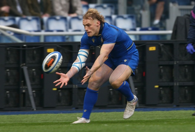 7/2/2026 Roma,Guinness M 6 Nations, Italia vs Scozia,nella foto Louis Linaghraccoglie l'ovale e va in meta in meta per l'Italia, Credit:Massimo Lovati / Avalon