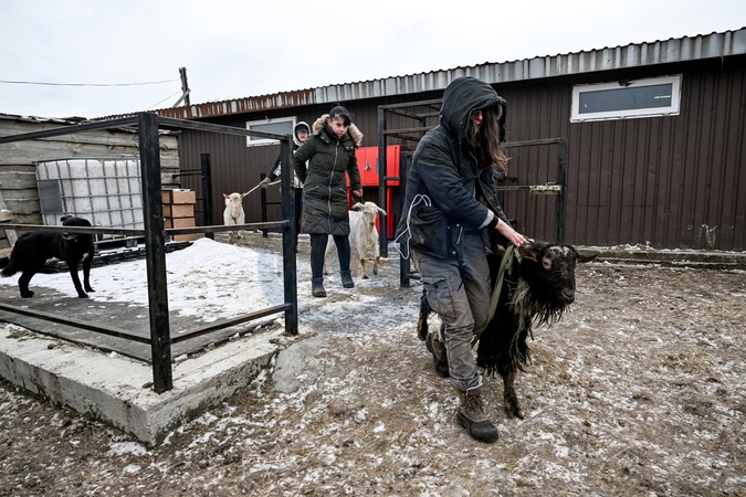 Goats evacuated from the front-line town of Orikhiv in southeastern Zaporizhzhia region arrive at the Pehas shelter, Dnipropetrovsk region, Ukraine, February 6, 2026., Credit:Dmytro Smolienko / Avalon