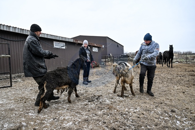 Goats evacuated from the front-line town of Orikhiv in southeastern Zaporizhzhia region arrive at the Pehas shelter, Dnipropetrovsk region, Ukraine, February 6, 2026., Credit:Dmytro Smolienko / Avalon