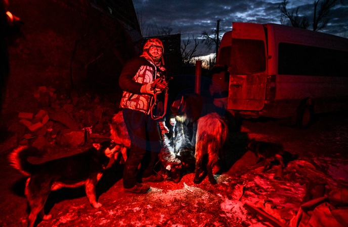 A volunteer puts goats into a van in Orikhiv, Zaporizhzhia region, Ukraine, February 6, 2026. Volunteers are set to evacuate nine goats from the front-line town of Orikhiv in the southeastern Zaporizhzhia region to the Pehas animal shelter in the Dnipropetrovsk region., Credit:Dmytro Smolienko / Avalon