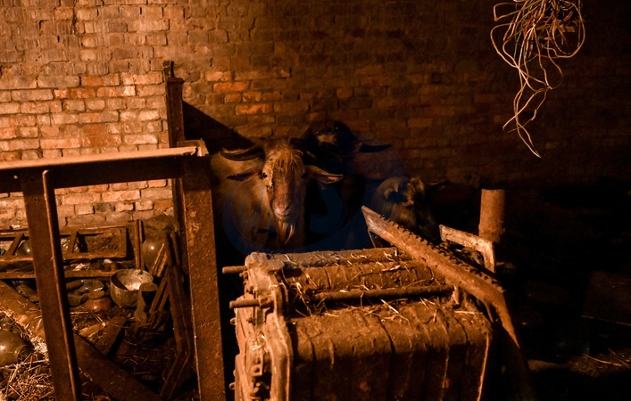Goats are kept in the basement by local Viktor Zinchenko, Orikhiv, Zaporizhzhia region, Ukraine, February 6, 2026. Volunteers are set to evacuate nine goats from the front-line town of Orikhiv in the southeastern Zaporizhzhia region to the Pehas animal shelter in the Dnipropetrovsk region., Credit:Dmytro Smolienko / Avalon