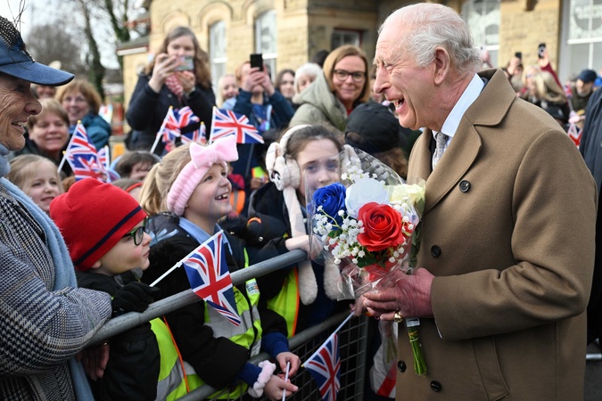 Britain's King Charles III chats with members of the public outside Clitheroe Station during a visit to the town of Clitheroe, northern England on February 9, 2026., Credit:PAUL ELLIS / Avalon