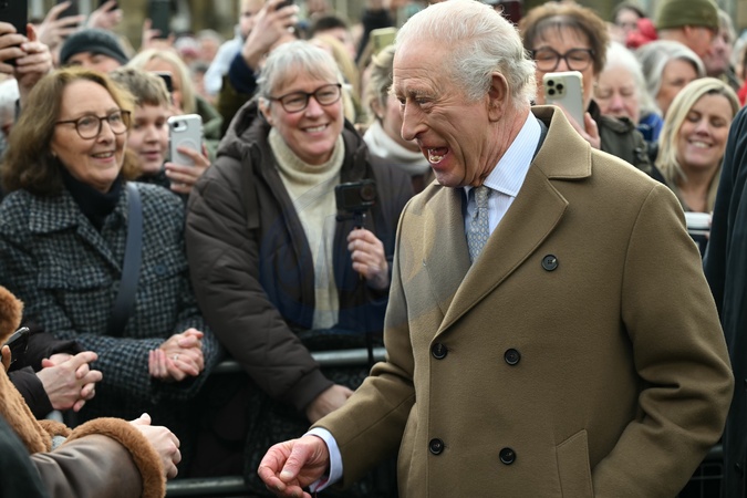 Britain's King Charles III chats with members of the public outside Clitheroe Station during a visit to the town of Clitheroe, northern England on February 9, 2026., Credit:PAUL ELLIS / Avalon