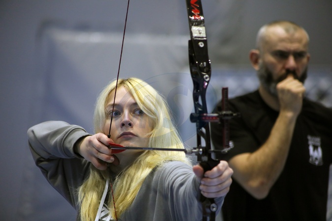 A member of the national veteran team practises archery during the training camp in preparation for the 2026 Marine Corps & Air Force Trials (MC&AF Trials), to be held February 20–March 3, 2026, at Camp Pendleton, California, Kyiv, February 6, 2026. The team's preparation, training, and participation are organised by the Ministry of Veterans Affairs of Ukraine together with the CBA Initiatives Center, within the framework of the Veteran Policy Strategy and the National Strategy for Creating a Barrier-Free Space in Ukraine, developed at the initiative of First Lady Olena Zelenska., Credit:Yuliia Ovsiannikova / Avalon