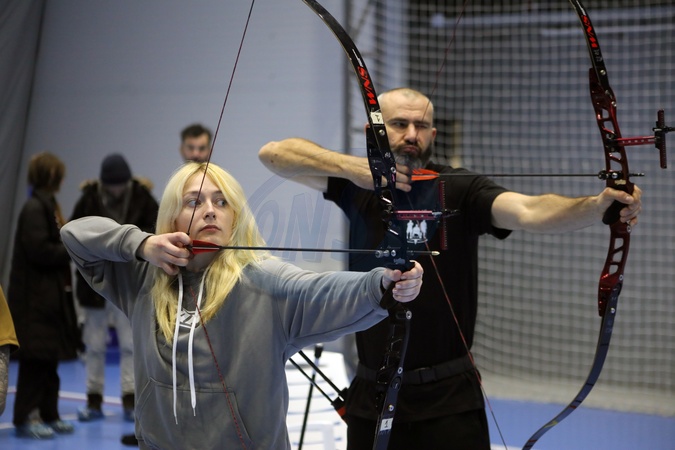 Members of the national veteran team practise archery during the training camp in preparation for the 2026 Marine Corps & Air Force Trials (MC&AF Trials), to be held February 20–March 3, 2026, at Camp Pendleton, California, Kyiv, February 6, 2026. The team's preparation, training, and participation are organised by the Ministry of Veterans Affairs of Ukraine together with the CBA Initiatives Center, within the framework of the Veteran Policy Strategy and the National Strategy for Creating a Barrier-Free Space in Ukraine, developed at the initiative of First Lady Olena Zelenska., Credit:Yuliia Ovsiannikova / Avalon