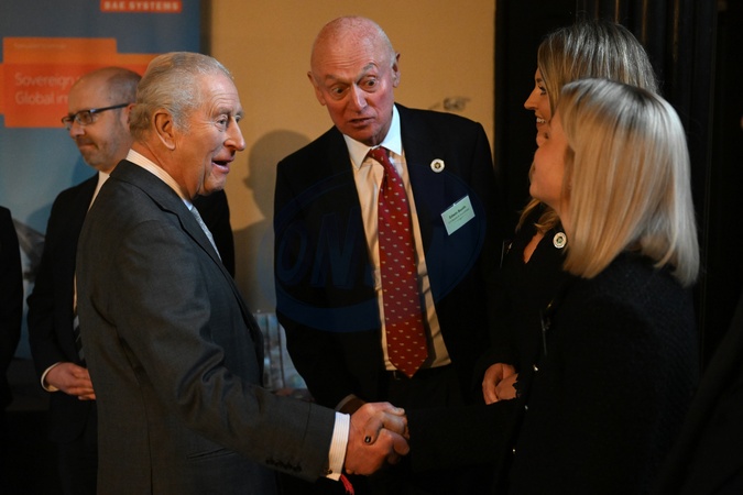 Britain's King Charles III (L) meets guests during a visit to the 700-year-old medieval manor Samlesbury Hall in Preston, north-west England on February 9, 2026., Credit:PAUL ELLIS / Avalon