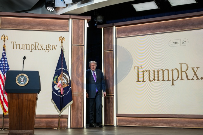 President Donald Trump announces the launch of TrumpRX in the South Court Auditorium, Thursday, February 5, 2026., Credit:Joyce N. Boghosian / Avalon