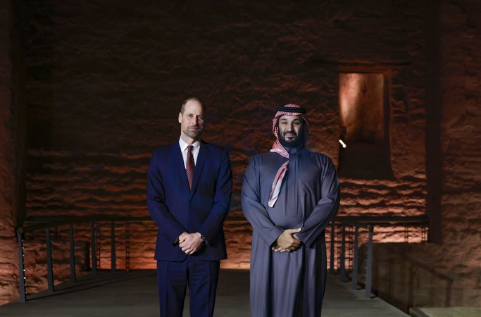 09/02/2026. Diriyah, Saudi Arabia. The Prince of Wales during a private tour of UNESCO World Heritage Site, At-Turaif. The Prince received a private tour of the historical site, led by Mohammed bin Salman bin Abdulaziz Al Saud, Crown Prince and Prime Minister of the Kingdom of Saudi Arabia. His Royal Highness last met the Crown Prince on his inward visit to London in 2018., Credit:Andrew Parsons / Kensington Palace / Avalon
