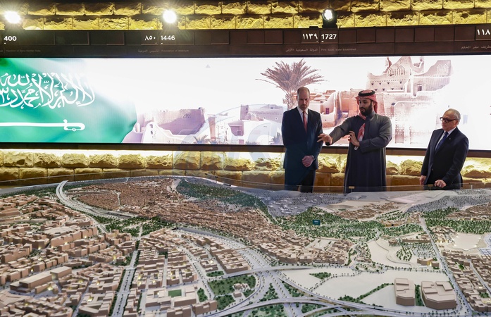 09/02/2026. Diriyah, Saudi Arabia. The Prince of Wales during a private tour of UNESCO World Heritage Site, At-Turaif. The Prince received a private tour of the historical site, led by Mohammed bin Salman bin Abdulaziz Al Saud, Crown Prince and Prime Minister of the Kingdom of Saudi Arabia. His Royal Highness last met the Crown Prince on his inward visit to London in 2018., Credit:Andrew Parsons / Kensington Palace / Avalon