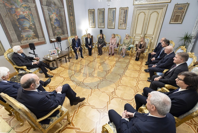 President Sergio Mattarella during the meeting with Bruno Vespa, together with the editorial staff of the "Porta a Porta" program . Rome, Italy 09 Feb 2026, Credit:Paul Giandotti / Avalon