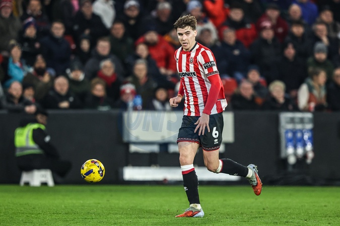 Tyler Bindon of Sheffield United breaks with the ball during the Sky Bet Championship match Sheffield United vs Middlesbrough at Bramall Lane, Sheffield, United Kingdom on 09 February 2026, Credit:Ae Cosgrove/News Images / Avalon