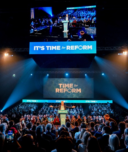 Nigel Farage Makes Major Speech At Reform UK Birmingham Rally, NEC, Birmingham. UK