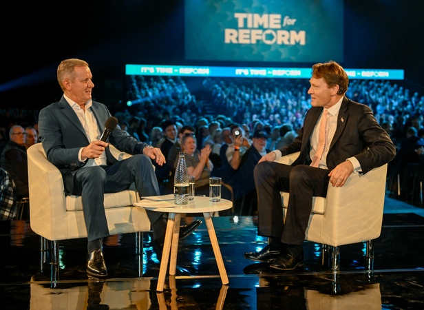 Richard Tice, deputy leader of Reform UK, during an interview with Jeremy Kyle ahead of a speech by Nigel Farage, leader of Reform UK, at the National Exhibition Centre (NEC) in Birmingham, UK, Credit:Jules Annan / Avalon