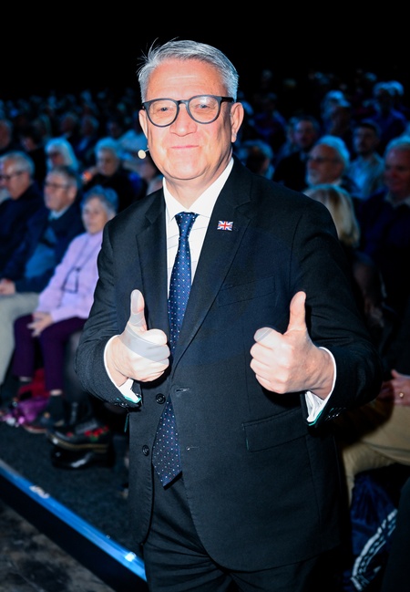 : Reform MP Andrew Rosindell talks at a Reform UK rally ahead of a speech by Nigel Farage, leader of Reform UK, at the National Exhibition Centre (NEC) in Birmingham, UK, Credit:Jules Annan / Avalon