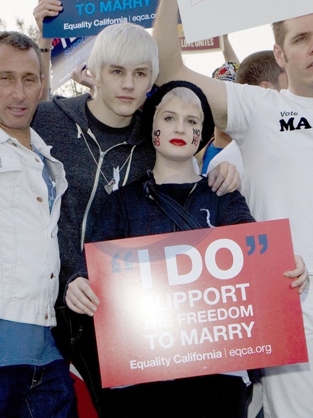 Kelly Osbourne i Luke Worrell protestuja przeciwko Propozycji 8, zabraniajacej malzenstw homoseksualnych, USA