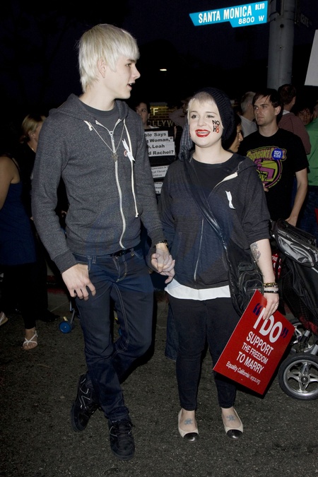 Kelly Osbourne i Luke Worrell protestuja przeciwko Propozycji 8, zabraniajacej malzenstw homoseksualnych, USA